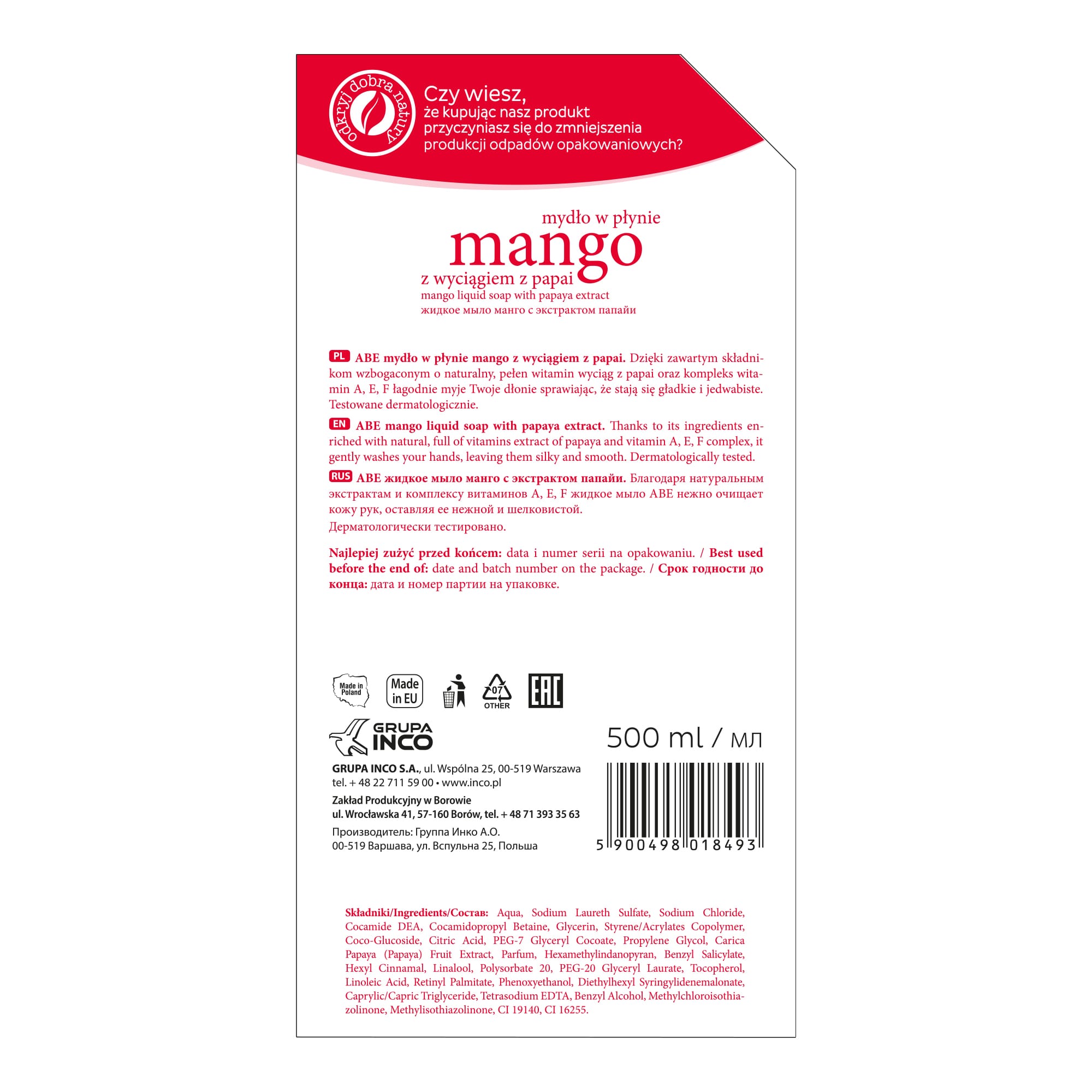 Mydło w płynie o zapachu mango z wyciągiem z papai. Dzięki zawartym składnikom wzbogaconym o naturalny wyciąg z papai oraz kompleks witamin A, E, F łagodnie myje Twoje dłonie sprawiając, że stają się gładkie i jedwabiste. Przebadane dermatologicznie.