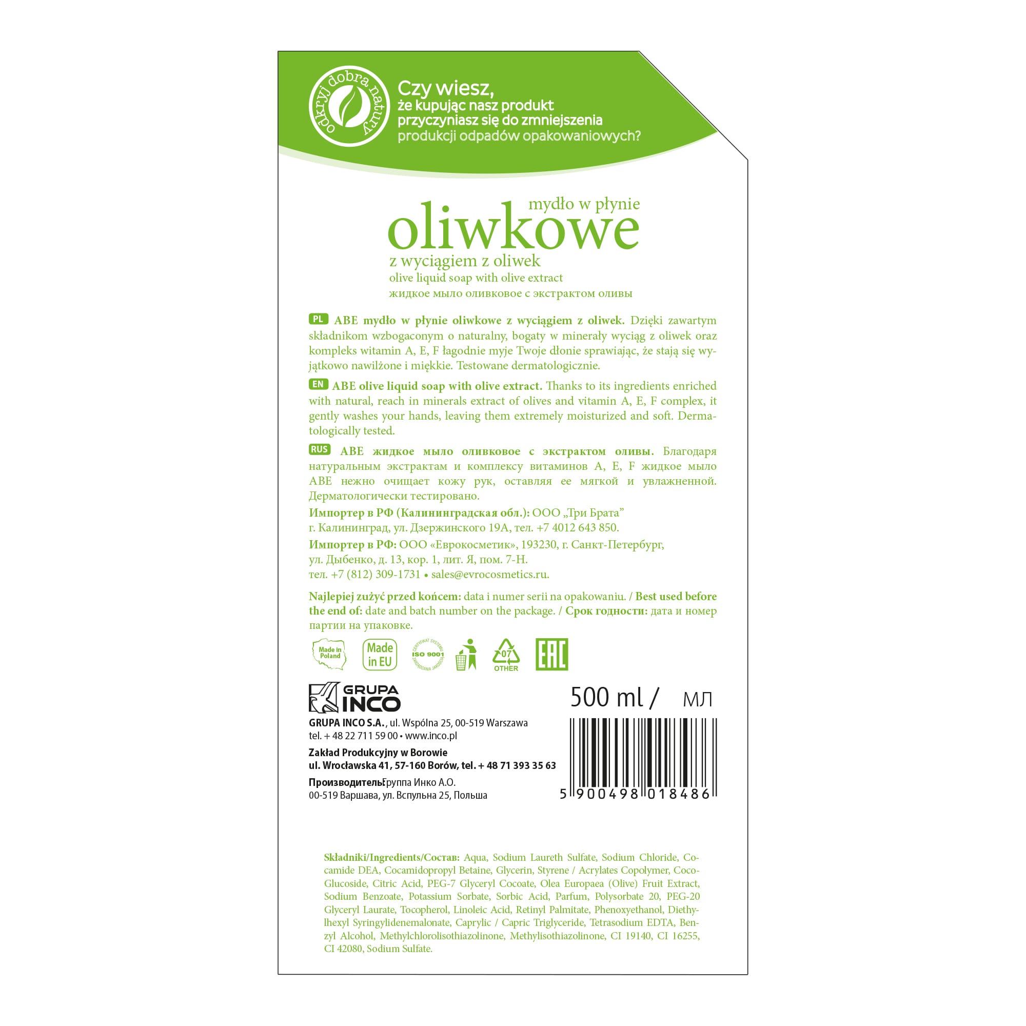 ABE mydło w płynie oliwkowe 500 ml zapas