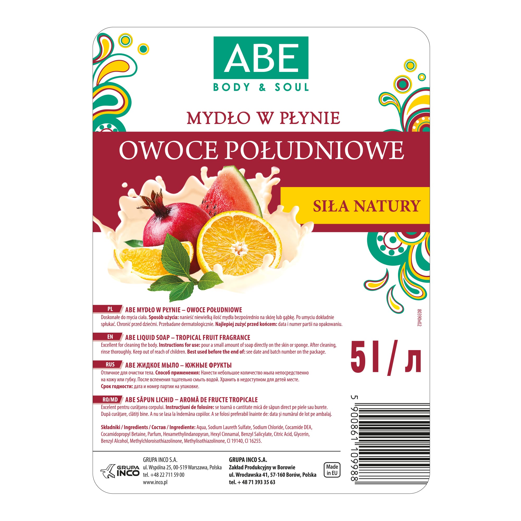 ABE mydło w płynie owoce południowe sprawia, że codzienna pielęgnacja staje się przyjemnym rytuałem. ABE mydło delikatnie oczyszcza skórę, pozostawiając uczucie świeżości. To doskonałe połączenie pielęgnacji i przyjemności zmysłowej, które sprawia, że codzienna kąpiel staje się momentem relaksu i odprężenia.