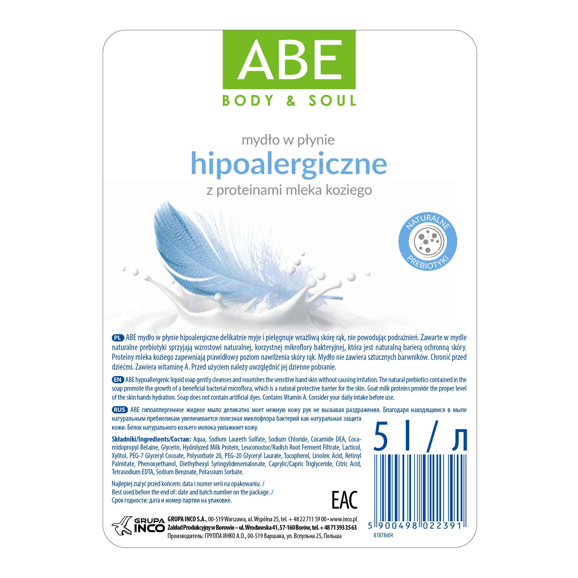 ABE nawilżające mydło hipoalergiczne z proteinami mleka koziego i prebiotykami 5 l