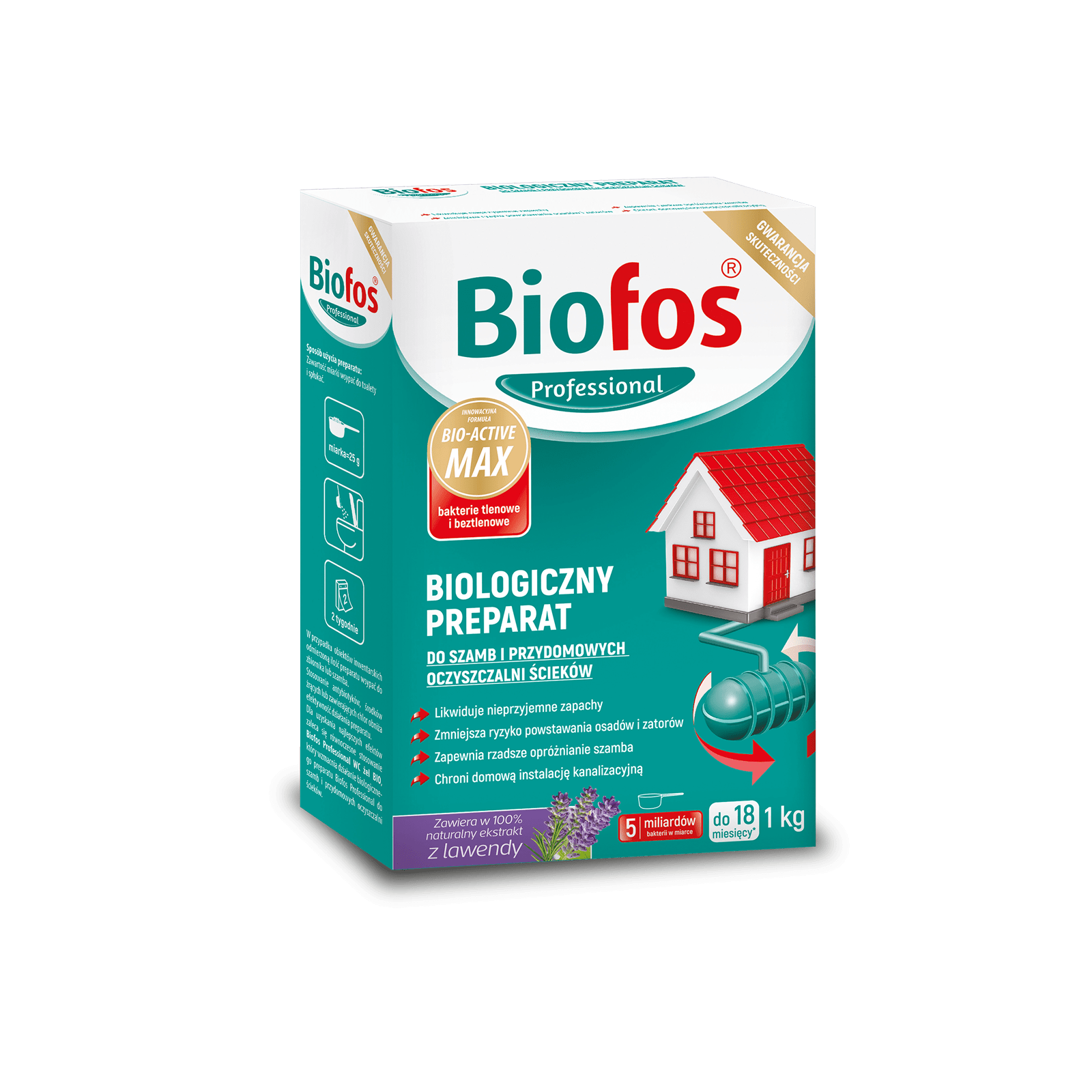 Biofos Professional to biologiczne preparaty do szamb i przydomowych oczyszczalni ścieków, które posiadają innowacyjną formułę Bio-Active Max ze składnikiem aktywnym biologicznie. Zawierają pożyteczne mikroorganizmy, które działają kompleksowo wewnątrz domowego systemu instalacji sanitarnej, przyspieszając procesy rozkładu i upłynniania ścieków. Biologiczny preparat Biofos Professional zawiera zarówno szczepy bakterii tlenowych jak i beztlenowych, dzięki czemu działa w każdych warunkach.