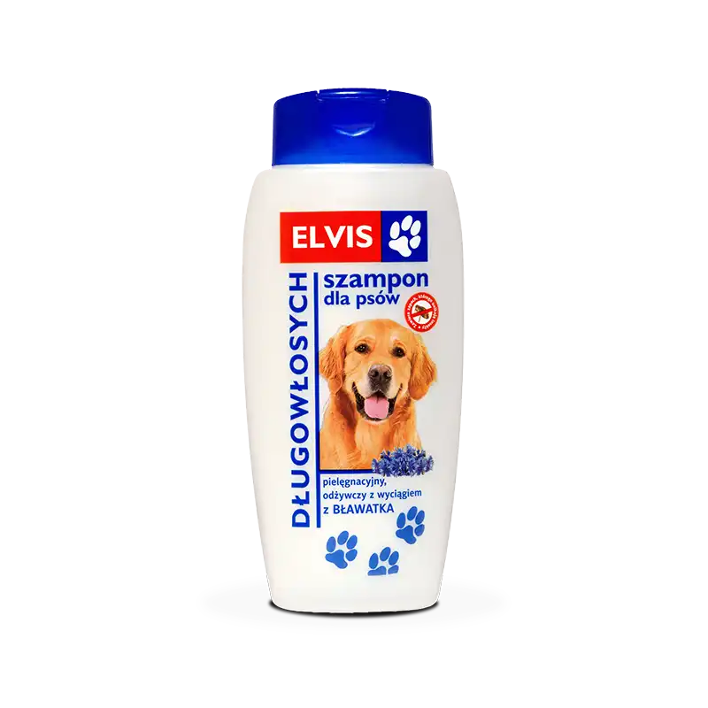 Elvis Szampon dla psów długowłosych to pielęgnacyjny szampon dla psów długowłosych pielęgnacyjny, odżywczy z wyciągiem z bławatka. Dzięki zawartym składnikom sprawia, że sierść po kąpieli staje się lśniąca, jedwabista i łatwa do rozczesania.