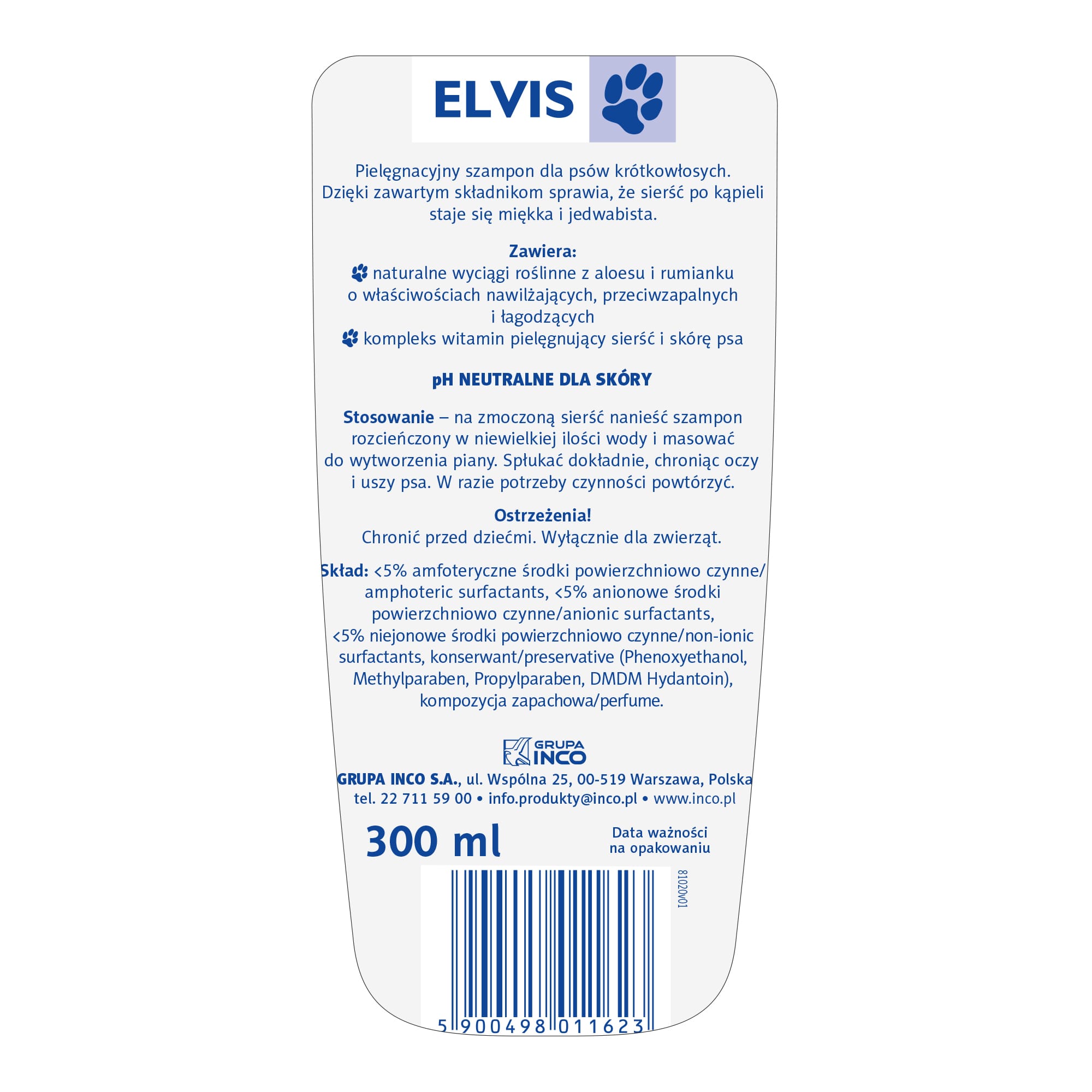 Elvis Szampon dla psów krótkowłosych to pielęgnacyjny szampon dla psów krótkowłosych pielęgnacyjny, odżywczy z wyciągiem z aloesu. Dzięki zawartym składnikom sprawia, że sierść po kąpieli staje się miękka i jedwabista.