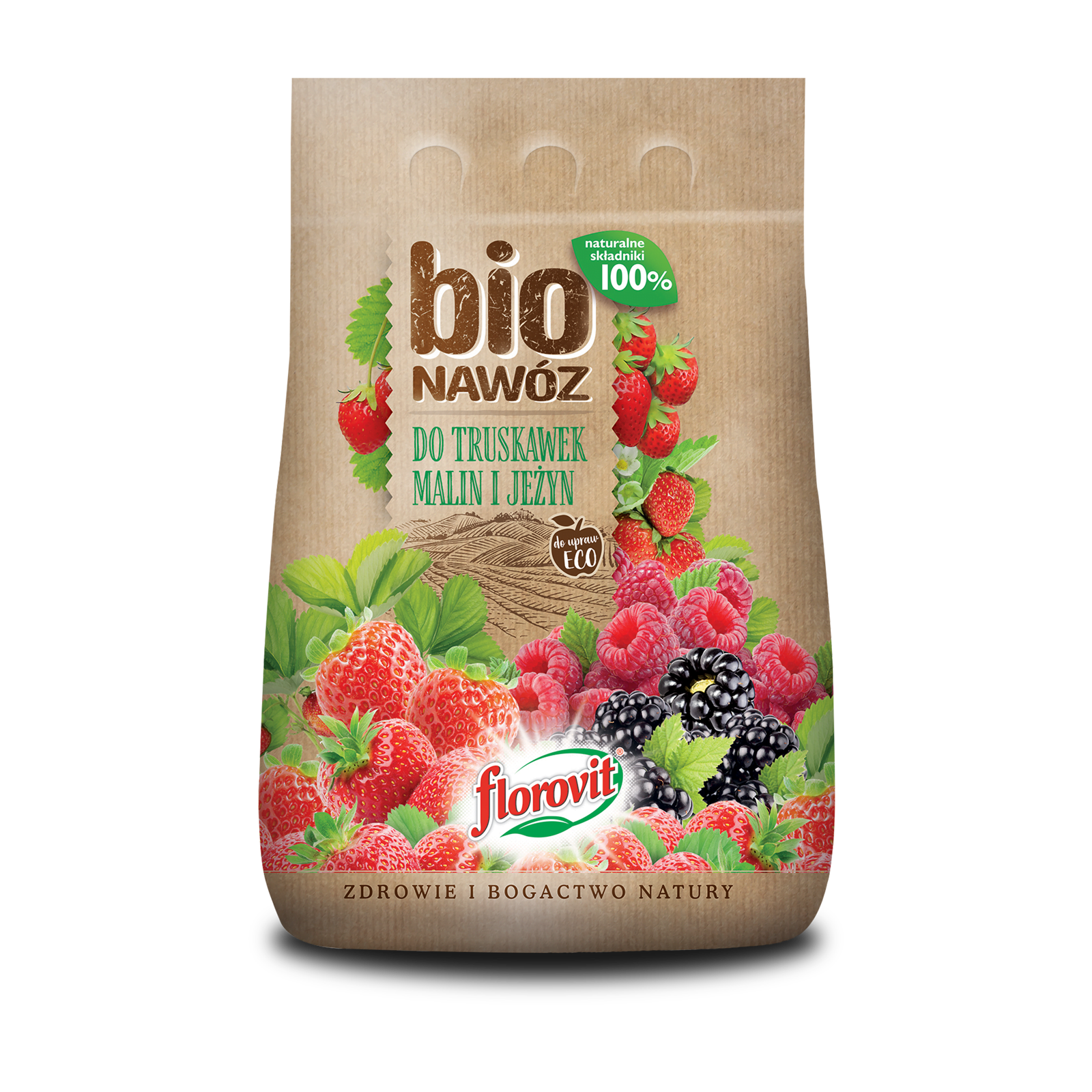 Florovit BIOnawóz do truskawek, malin i jeżyn – to granulowany, zawierający wyłącznie naturalne składniki nawóz do upraw ekologicznych. Posiada wszystkie składniki pokarmowe potrzebne do odpowiedniego wzrostu i plonowania roślin. Szczególnie polecany do stosowania na glebach o małej zawartości próchnicy. BIO nawóz przywraca także biologiczną równowagę ogrodu. Stosowanie BIO nawozu poprawia właściwości gleby, a także powoduje doskonałe zatrzymywanie wilgoci w glebie.