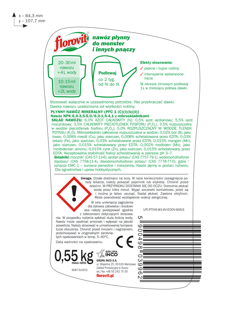 Sposób stosowania Florovit do monster i innych pnączy 0,55 kg: