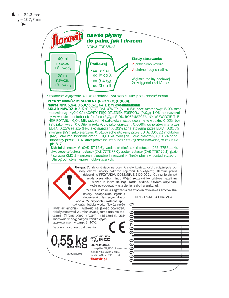 SKŁAD NAWOZU Florovit do palm, juk i dracen 0,55 kg:
