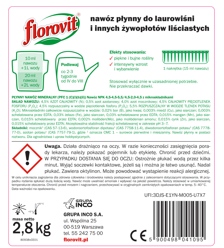 Florovit nawóz do laurowiśni i innych żywopłotów liściastych 2,8 kg
