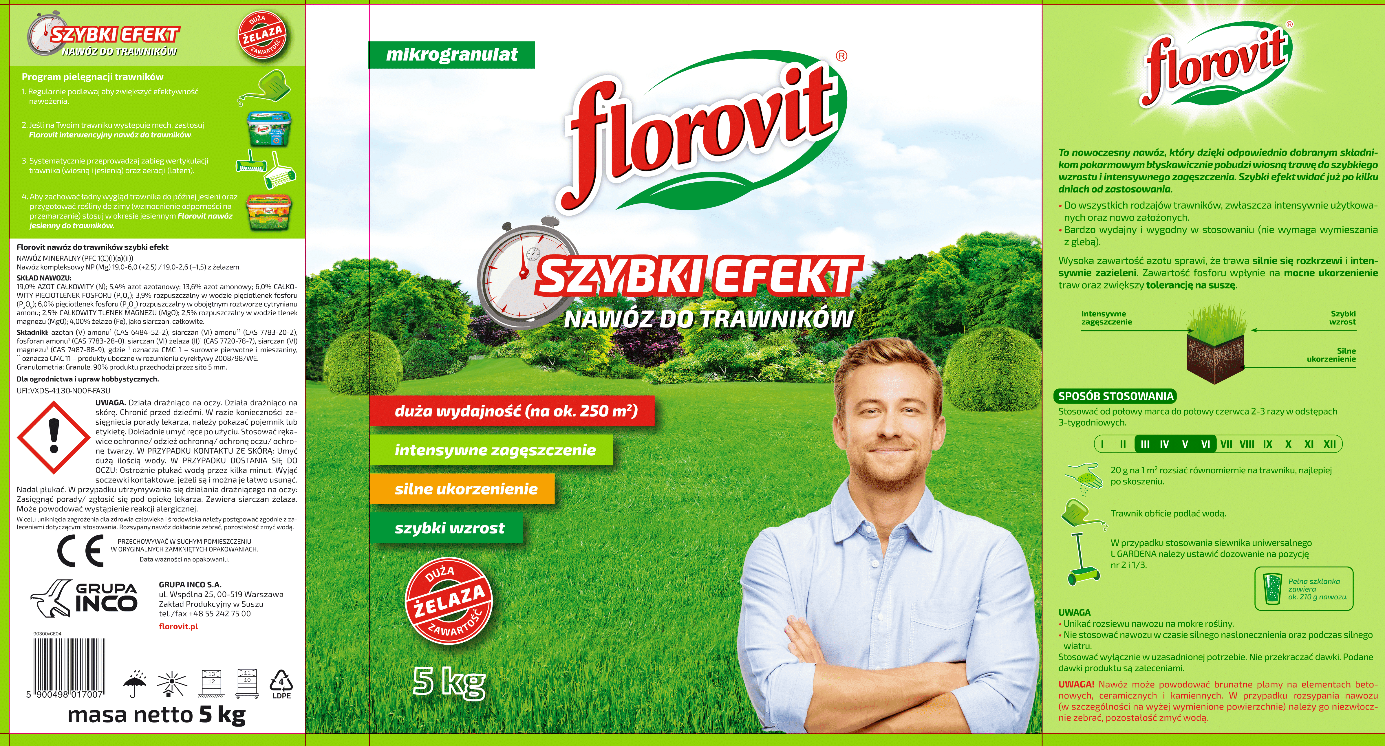 Florovit nawóz do trawników szybki efekt 10 kg to nowoczesny nawóz, który dzięki odpowiednio dobranym składnikom pokarmowym błyskawicznie pobudzi wiosną trawę do szybkiego wzrostu i także do intensywnego zagęszczenia.