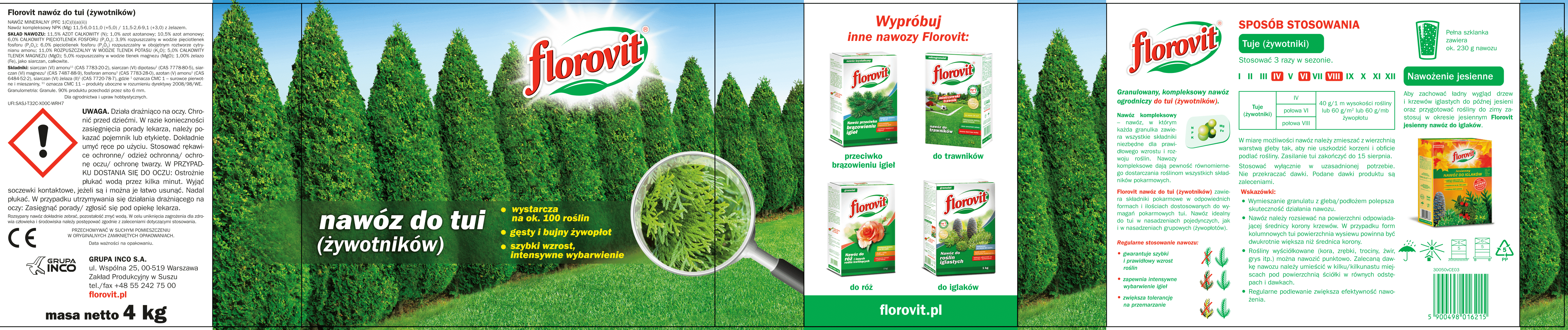Florovit nawóz do tui 4 kg (żywotników) zawiera składniki pokarmowe w odpowiednich formach i ilościach, które są dostosowane do wymagań pokarmowych tui. I dlatego nawóz ten jest idealny dla tui w nasadzeniach pojedynczych jak i w nasadzeniach grupowych (żywopłotów).