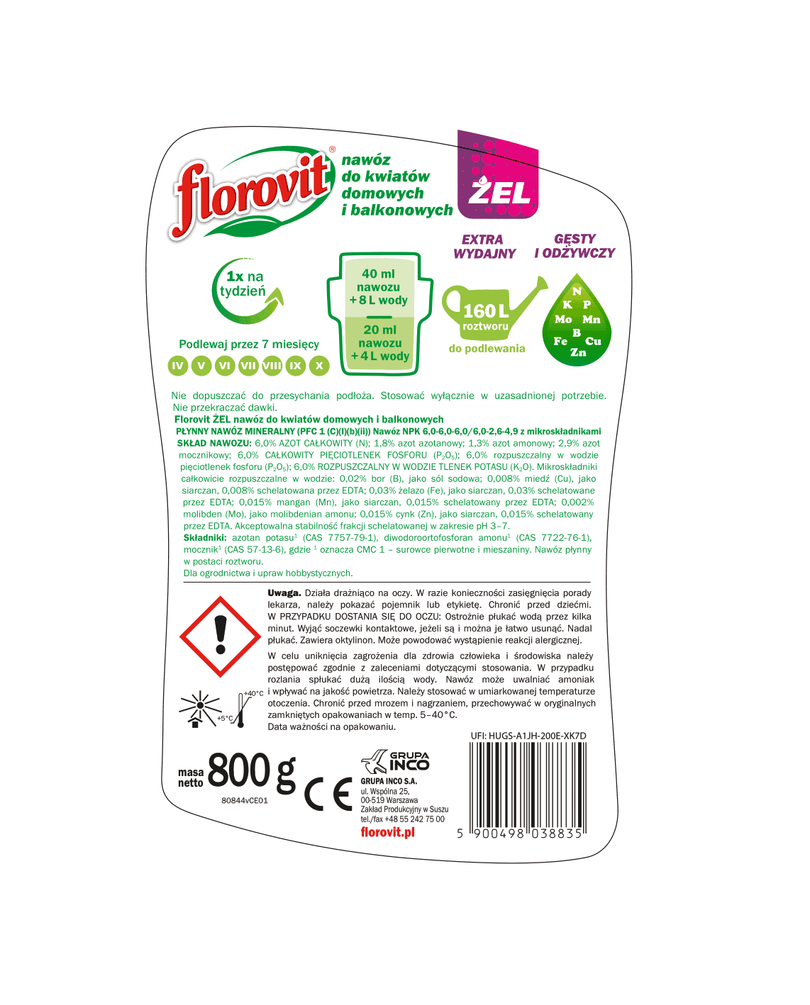 Florovit nawóz do kwiatów domowych i balkonowych w żelu 800 g