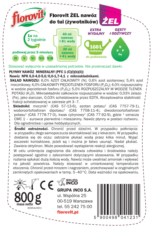 Florovit nawóz w żelu do tui (żywotników) 800 g