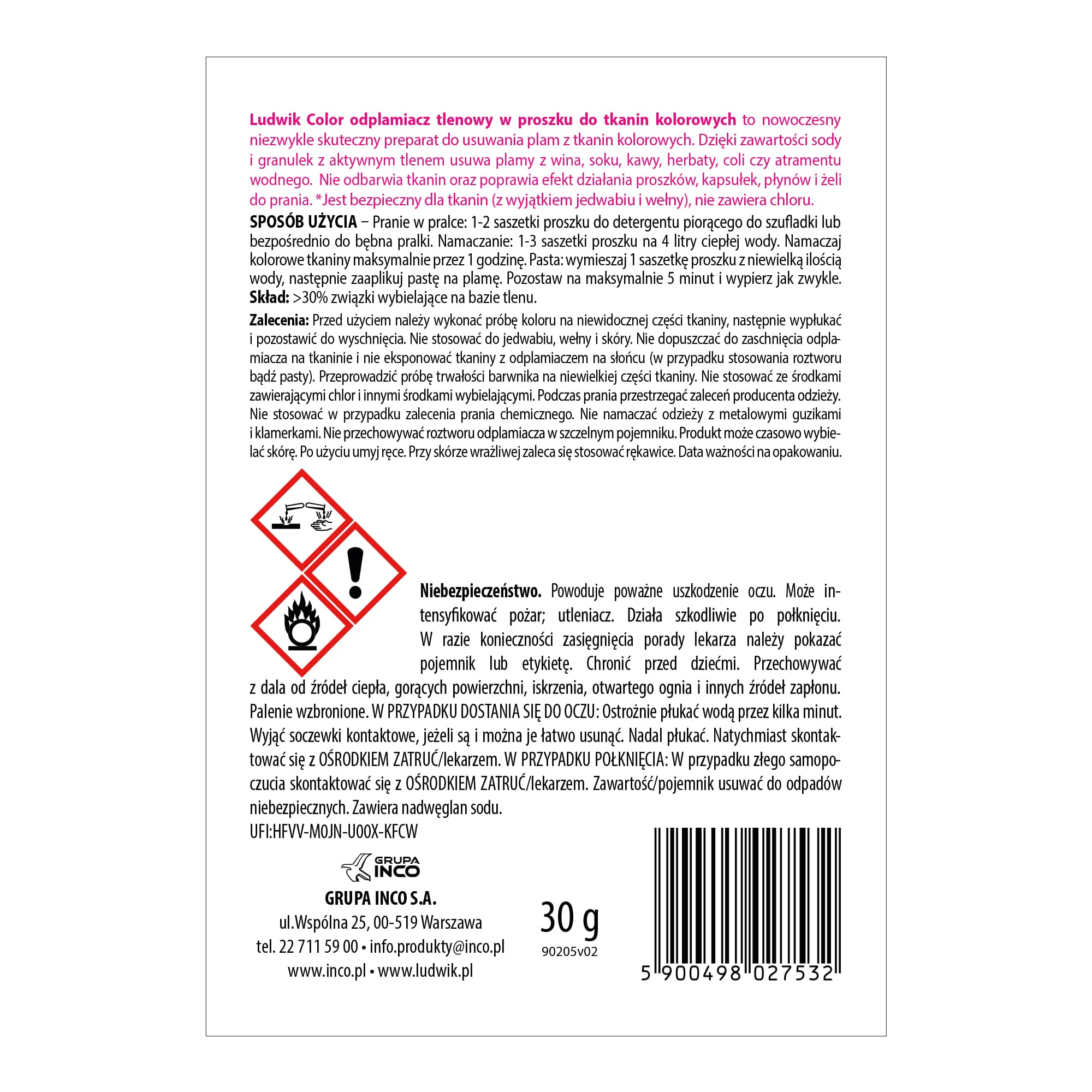 Sposób użycia Ludwik odplamiacz do tkanin kolorowych: