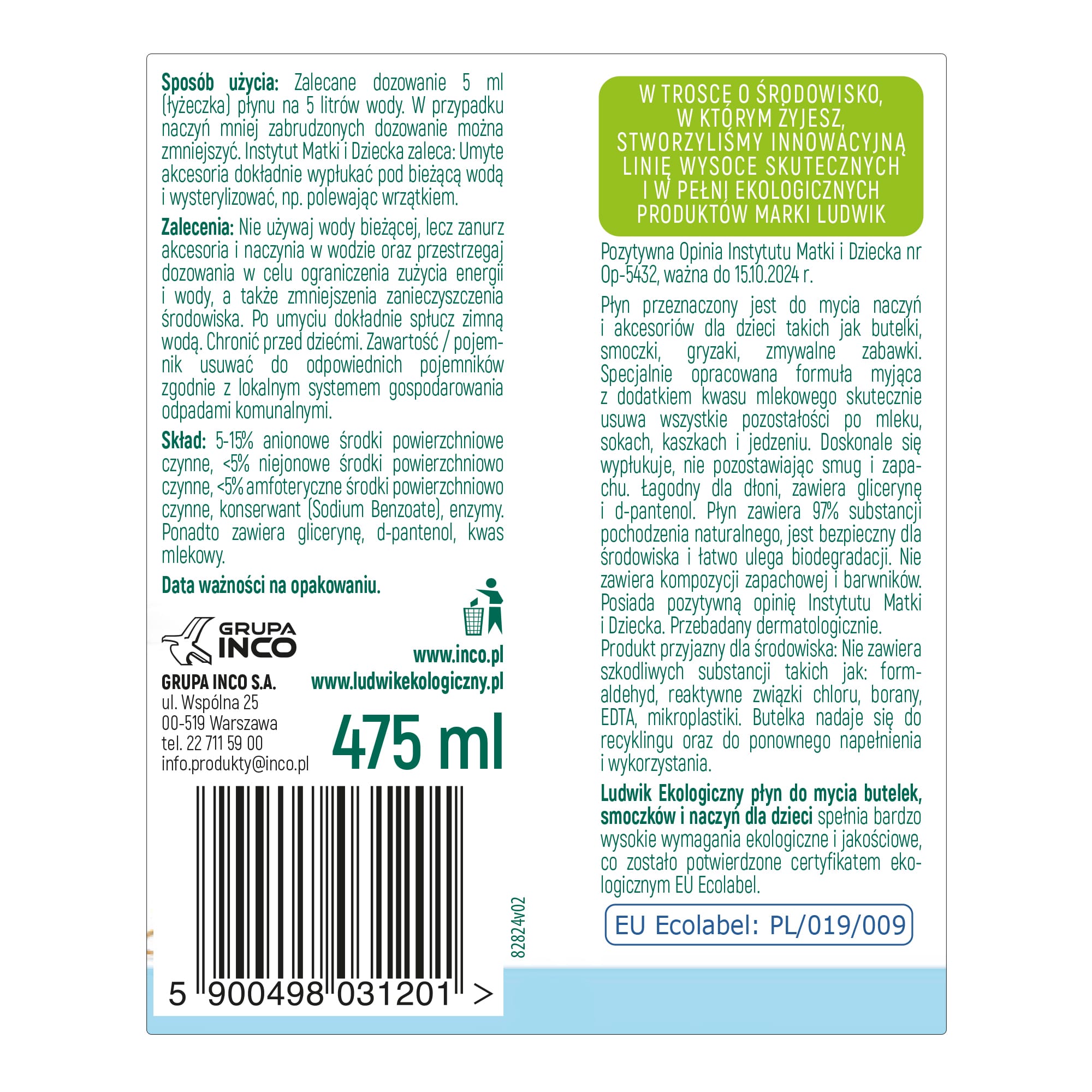 Ludwik Ekologiczny płyn do mycia butelek, smoczków i naczyń dla dzieci 475 ml