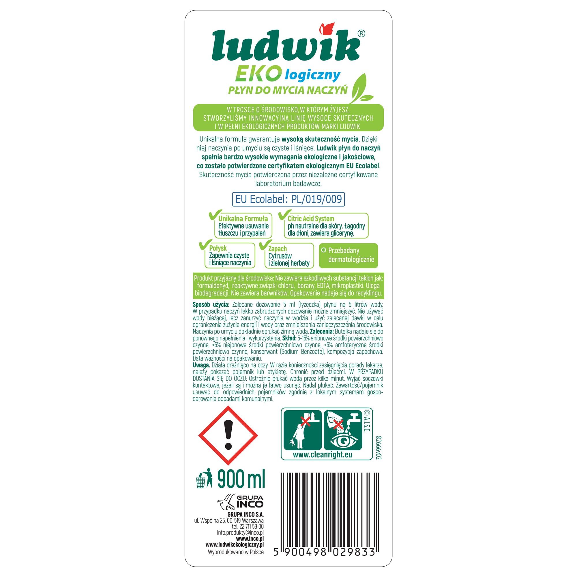 Ludwik Ekologiczny płyn do mycia naczyń z dodatkiem gliceryny o przyjemnym zapachu cytrusów i zielonej herbaty. Biodegradowalny, bez szkodliwych substancji chemicznych. Łagodny dla skóry dłoni. Dzięki systemowi Citric Acid System doskonale radzi sobie z silnymi zabrudzeniami, zatłuszczeniami i przypaleniami. Pozostawia lśniące i idealnie czyste naczynia. Ludwik Ekologiczny płyn do mycia naczyń posiada oznaczenie EU Ecolabel, które oznacza iż produkt spełnia wysokie kryteria środowiskowe i zdrowotne. Przeczytaj dlaczego warto wybrać Ludwika Ekologicznego. Możesz sprawdzić także inne produkty marki.