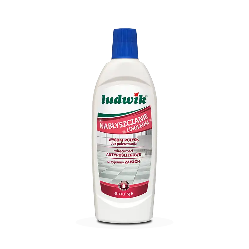 Ludwik emulsja do nabłyszczania linoleum i PCV. Nadaje powierzchniom piękny i trwały połysk bez konieczności polerowania. Utworzona powłoka zabezpiecza podłogę przed śladami codziennego użytkowania. Wygodna w użyciu formuła nie wymaga stosowania zmywacza. Posiada właściwości antypoślizgowe. Pozostawia przyjemny zapach. Sposób użycia: Na czystą (umytą uniwersalnym płynem myjącym Ludwik) i suchą powierzchnię nanieść równomiernie ściereczką lub mopem cienką warstwę emulsji. Pozostawić na 20-30 min. do całkowitego wyschnięcia. Dla uzyskania mocniejszego połysku zaleca się nałożenie 2-3 warstw. Kolejne warstwy emulsji nakładać na wyschniętą powierzchnię. Chronić przed mrozem.