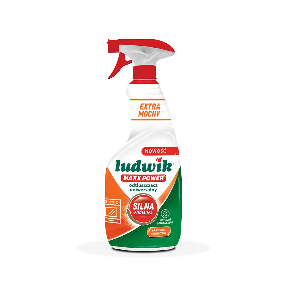 Ludwik MAXX POWER spray do odtłuszczania. Nasza zaawansowana formuła skutecznie usuwa tłuszcz i zabrudzenia, zapobiegając ich ponownemu osadzaniu. Idealny do kuchni, łazienki i innych powierzchni, zapewnia długotrwałą czystość, świeży zapach i połysk bez smug.