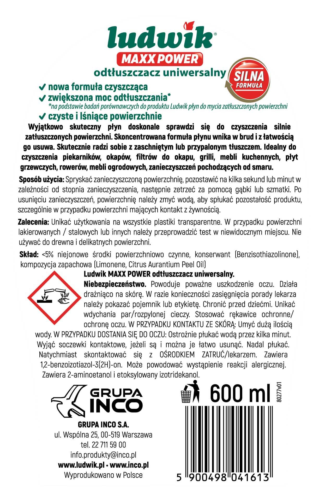 Ludwik MAXX POWER spray uniwersalny do odtłuszczania 600 ml
