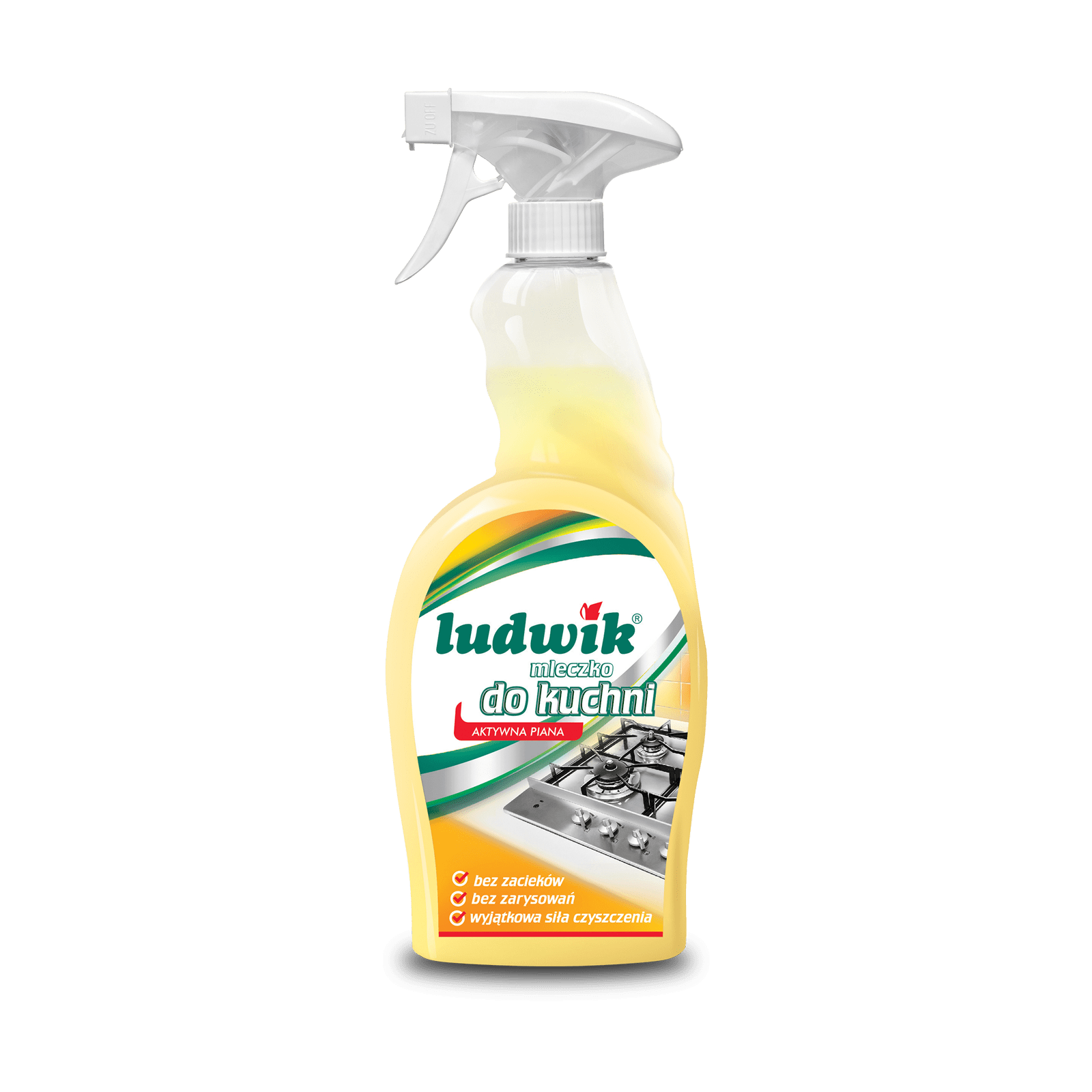 Ludwik mleczko do kuchni z aktywną pianą usuwa tłuszcz, przypalone jedzenie oraz lepki brud. Skutecznie czyści zlewozmywaki, blaty, kuchenki mikrofalowe oraz inne sprzęty kuchenne. Nie pozostawia zarysowań. Łatwe w użyciu. Nadaje powierzchniom cytrusowy zapach.