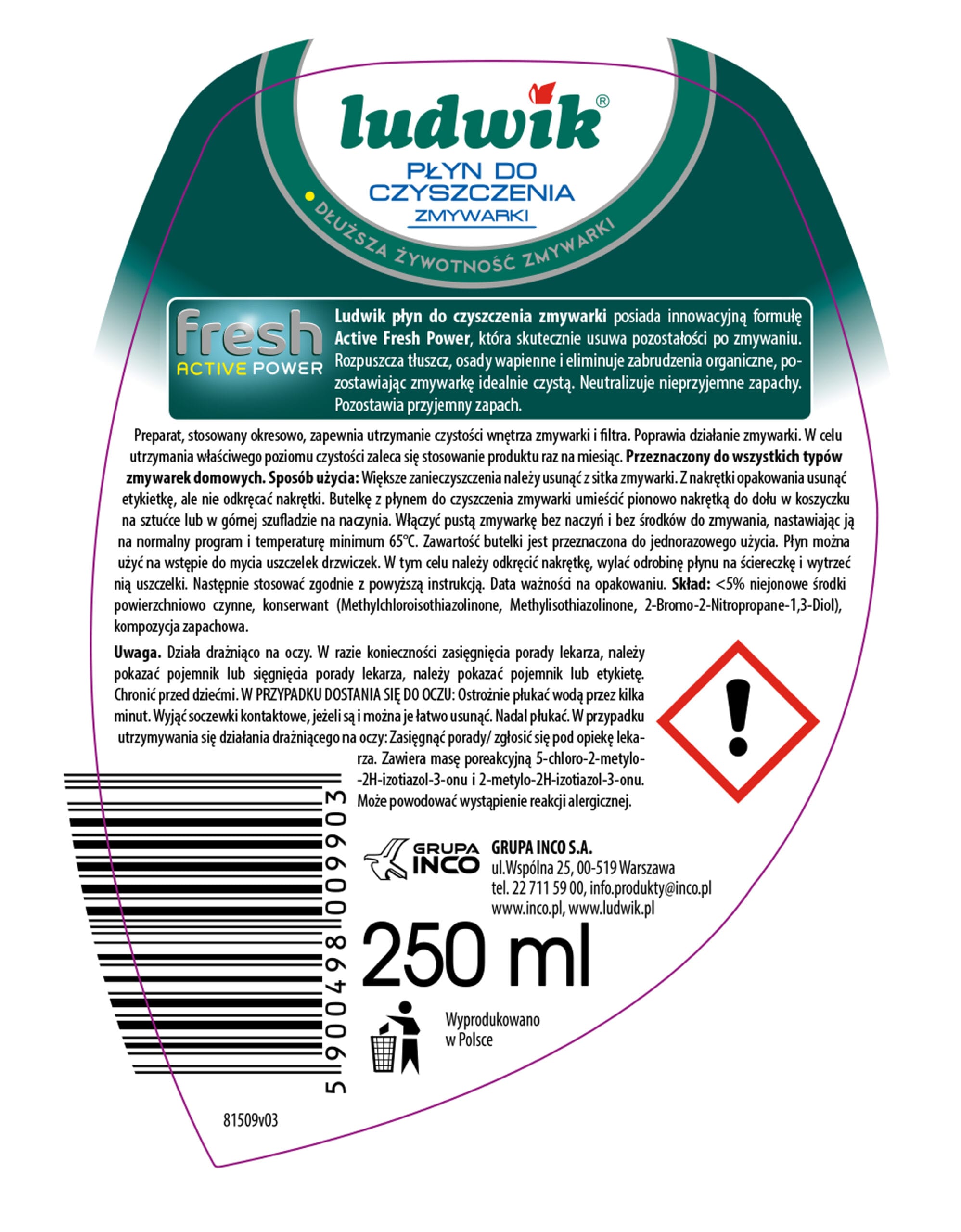 Ludwik Płyn do czyszczenia zmywarki 250 ml