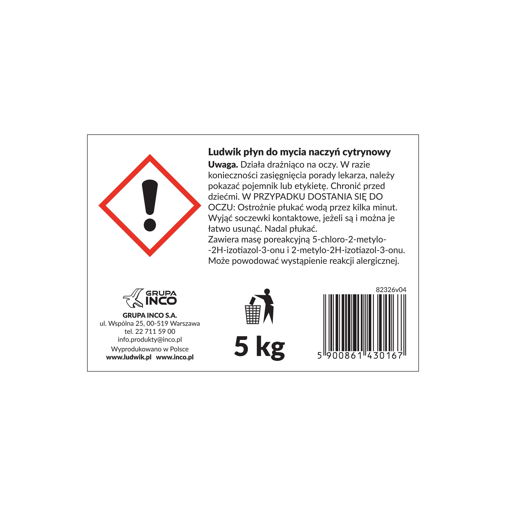 Ludwik Płyn do mycia naczyń cytrynowy 5 kg
