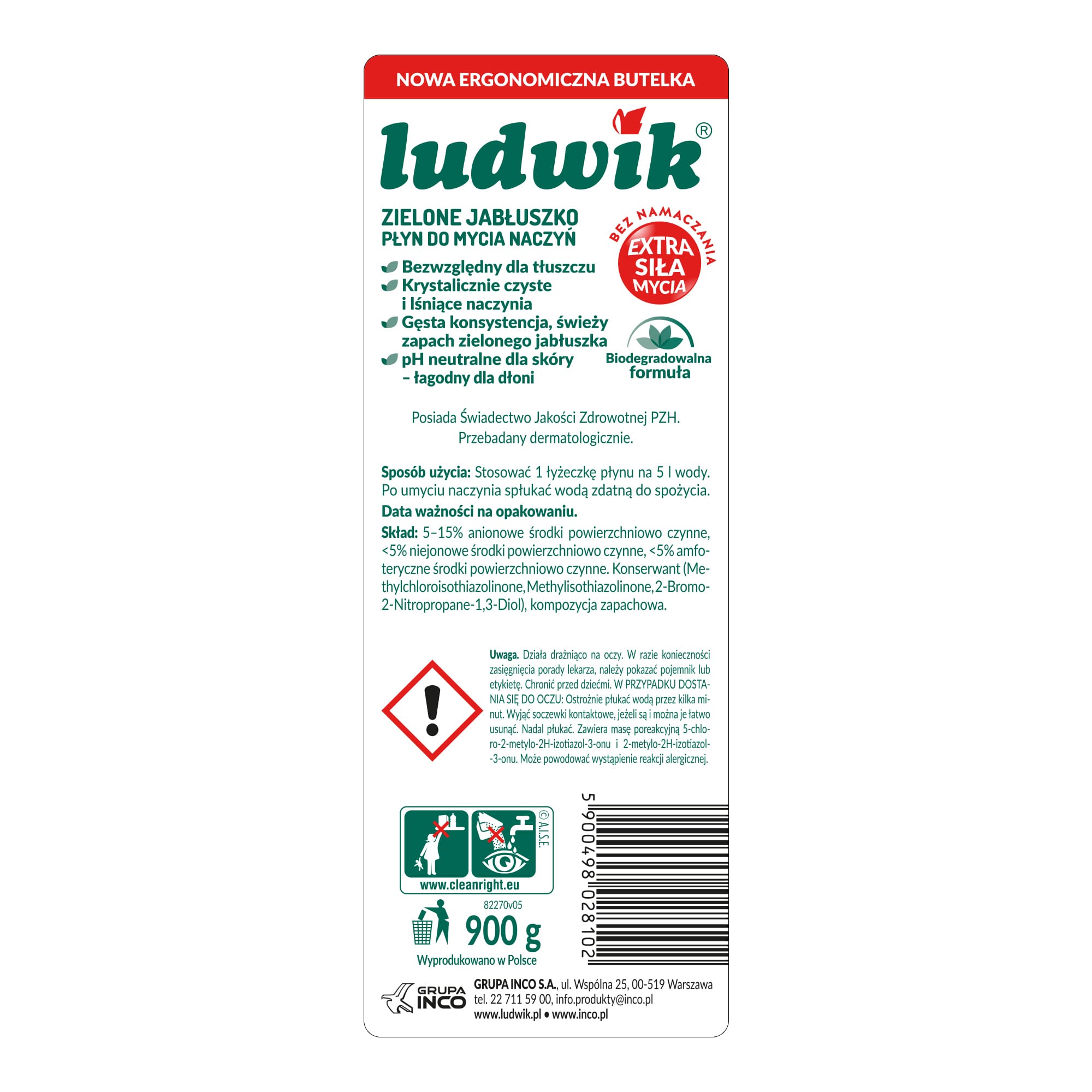 Ludwik Płyn do mycia naczyń zielone jabłuszko 900 g