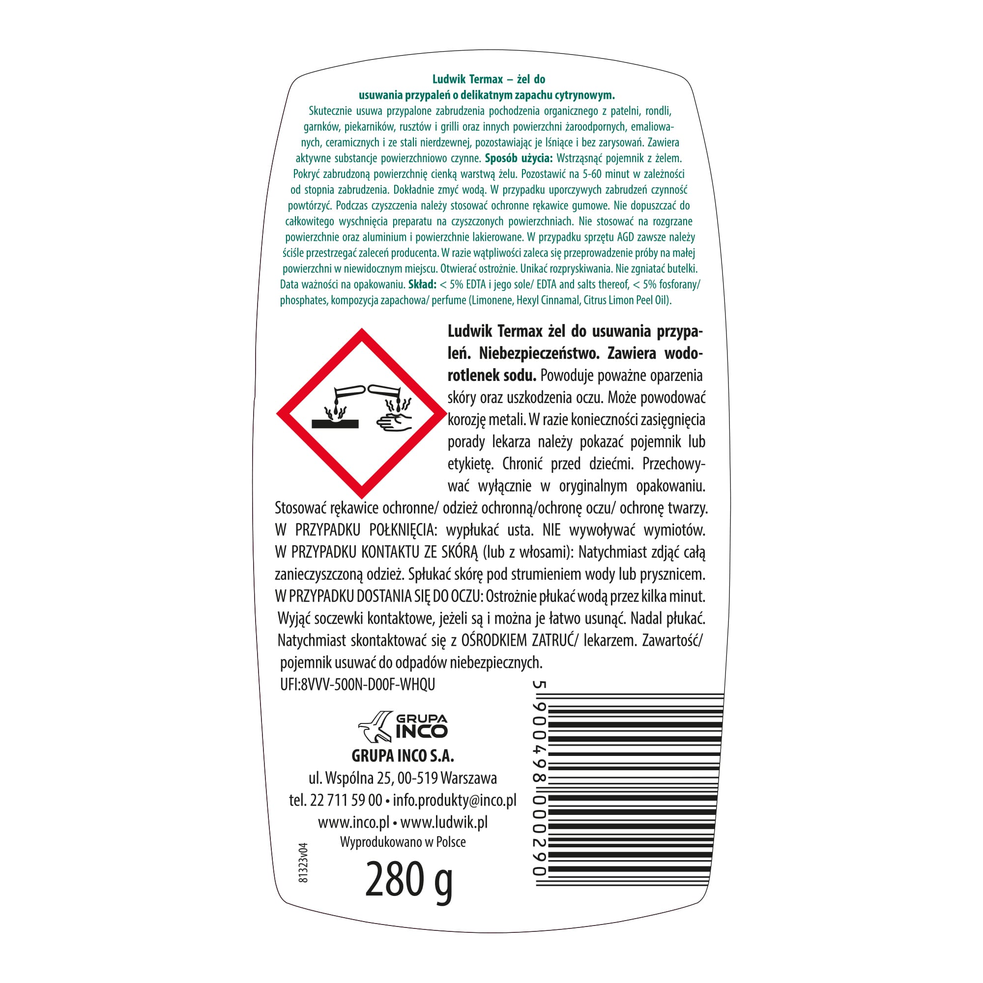 Ludwik Termax Żel do usuwania przypaleń garnków, patelni, grilli, rusztów 280 g