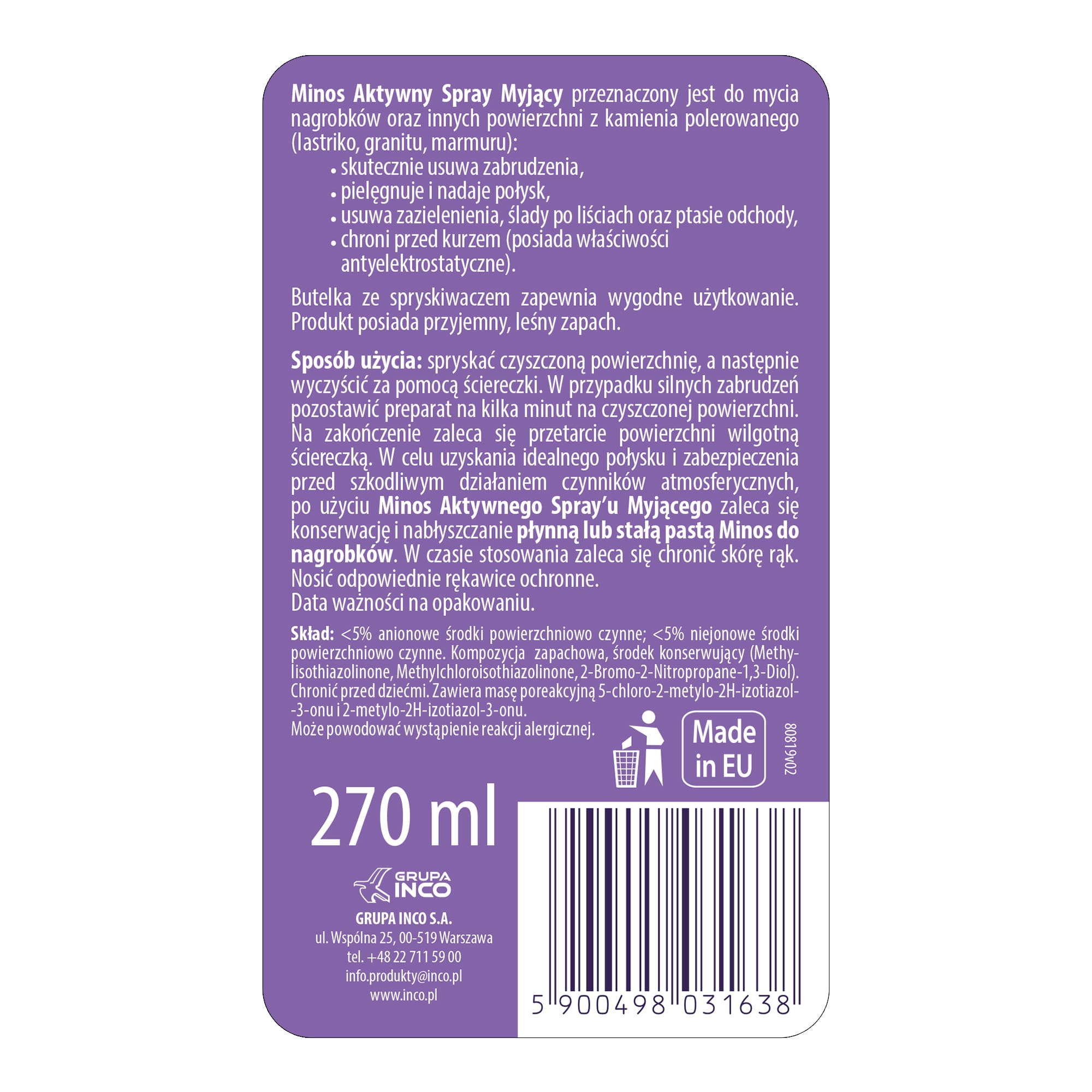 Minos Aktywny Spray Myjący przeznaczony jest do mycia nagrobków oraz innych powierzchni