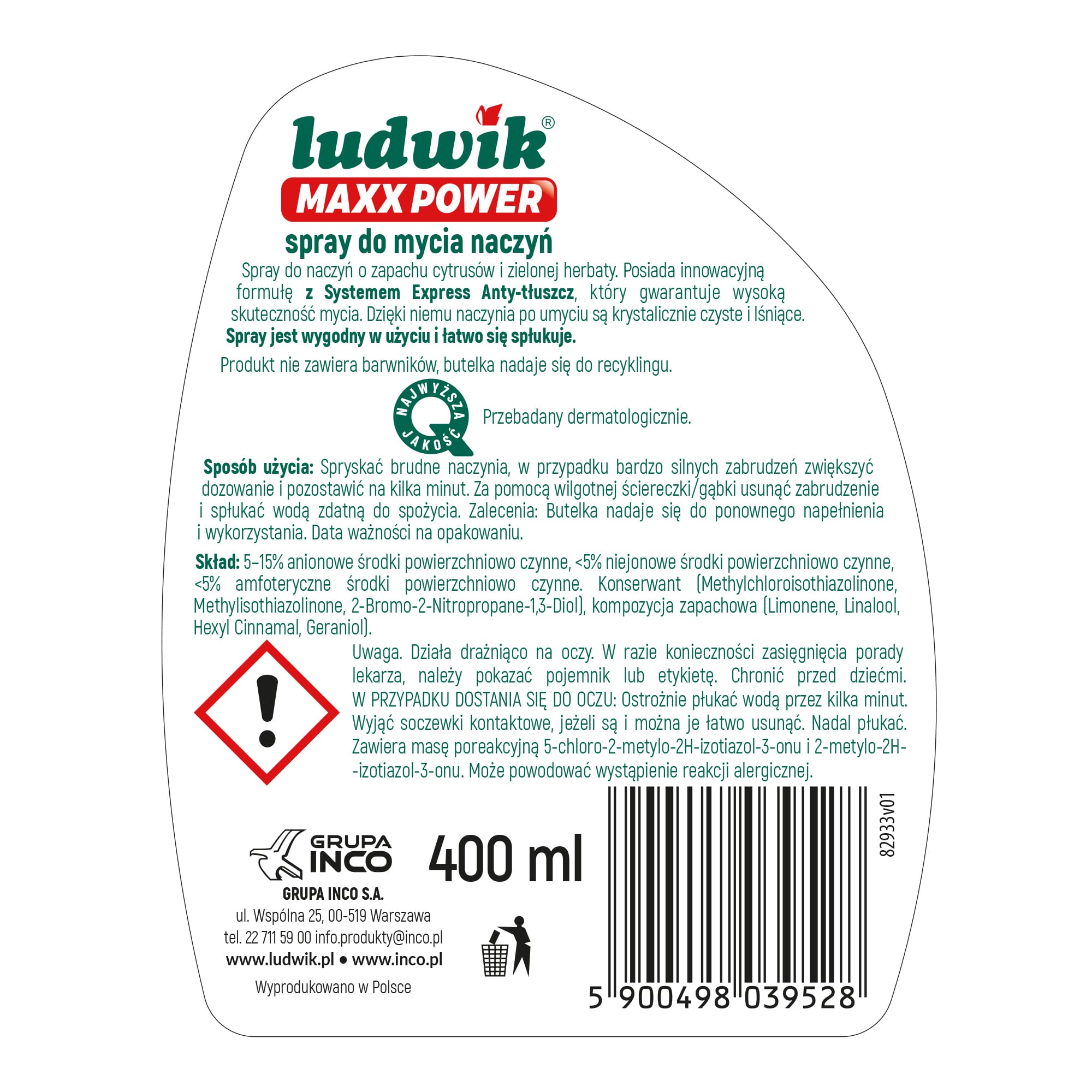 Ludwik MAXX POWER Spray do naczyń 400 ml